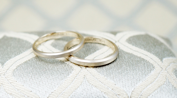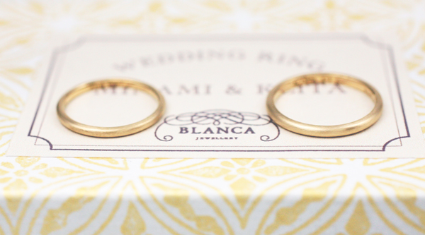 - 『trapezium』のマリッジリング、 マットフィニッシュのシャンパンゴールドでのご注文です。 新郎様は2.5ミリ幅、 新婦様はそれより少し細くお作りしました。 外箱はオリエンタルビューティの新婦...
