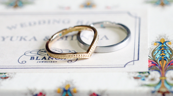- 『V shaped Millegrain』と『FLAT』のマリッジリング。 レディースはK18イエローゴールド、 メンズはPt900のマットフィニッシュです。 一見、全く異なるデザインと思いきや・・...