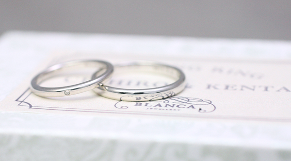 プラチナの『Half Round』ringです。 色々なシェイプもご検討いただきましたが 何にでも合わせやすいベーシックな甲丸リングを マリッジリングにご注文いただきました Bride ringには...