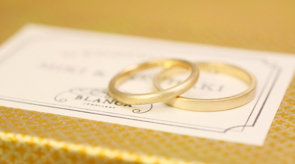 K18イエローゴールドの『Half Round』ringと『FLAT』ringのマリッジリングです。 『Half Round』ringは1.8mm幅、 『FLAT』ringは1.0mmの厚みに、と ...
