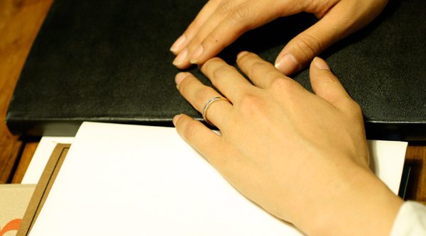 - 打ち合せの風景。 とあるデザイナーさんの指もとにはこちらがきらり。 //