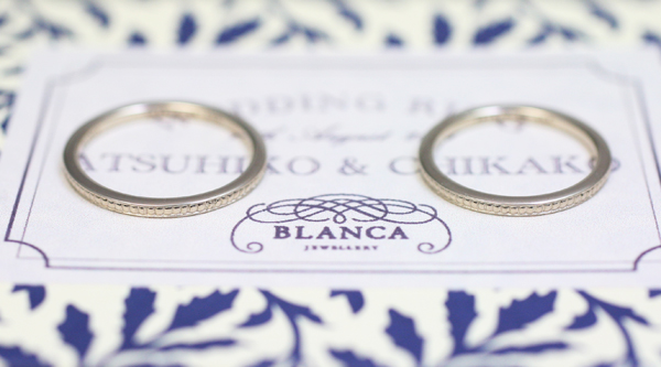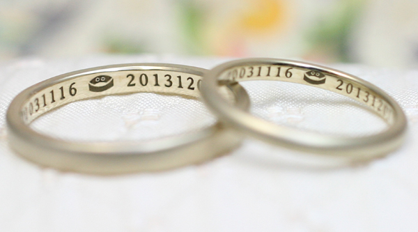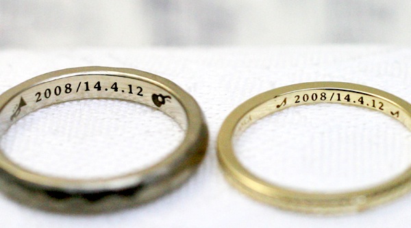 - 2.5mmの『FLAT』と 2mmの『Half Round』のシャンパンゴールドを 結婚指輪にご注文いただきました。 リングの内側には、イラストレーターでもあるご主人様が描いたマークを 日付と一緒に...
