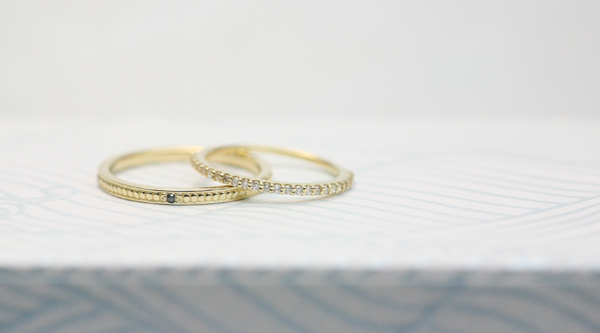 - 『Half eternity』リングと『Millegrain』リングのカスタムオーダーを 結婚指輪としてご注文いただきました。 メンズには等間隔に5つのメレダイヤモンドが留めてあります。 センターは...