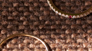 - 繊細で華奢な結婚指輪です。 新婦の細くて華奢な指にとってもお似合い。 新郎のリングは K18とPt900のコンビのHalf cut ring。 レディースの方には ダイヤの中に一粒だけルビーが。 し...